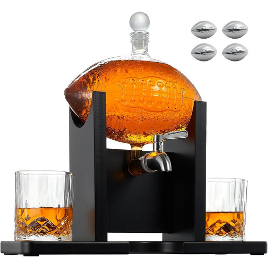 Football Decanter Set with 2 Whiskey & Wine Glasses |